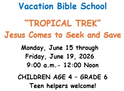 OFFERINGS: A free will offering will be taken each day. Children are encouraged to give as they are able. Offerings this year will be used to help fund our Missional Outreach group’s project to assemble School Kits for Lutheran World Relief. More information will be sent home during the week about this project.